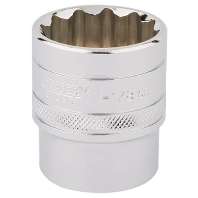 General description This Draper 33727 Imperial Gear Wrench features a 1/2 inch square drive socket with 12 points, designed for various tightening and loosening tasks. Made from hardened and tempered chrome vanadium steel, it ensures durability and strength. The socket has a polished finish and a knurled ring for better grip during use, making it suitable for a range of applications requiring a size of 1-1/8 inches. Technical specifications Material: Chrome vanadium steel, hardened and tempered Finish: Polished Drive size: 1/2 inch Number of points: 12 Socket size: 1-1/8 inches Compatibility and accessories Compatible with 1/2 inch drive ratchets and extensions Suitable for use with various hand tools designed for 12-point sockets Installation Insert the socket onto a compatible 1/2 inch drive ratchet or extension Ensure it clicks into place securely before use Usage Use for tightening or loosening fasteners that match the socket size Apply appropriate torque to avoid damaging the