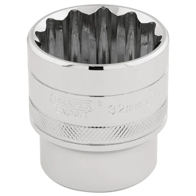 General description This is a 1/2 inch square drive metric socket with a polished chrome finish. It is designed for professional use and offers high durability and precision. Technical specifications Size: 32mm Number of points: 12 Drive size: 1/2 inch Material: Chrome vanadium steel Finish: Polished chrome Manufactured and tested according to DIN3122 and ISO3315 standards Compatibility and accessories Compatible with 1/2 inch drive ratchets and torque wrenches Suitable for use with various socket sets and extensions Installation Insert the socket onto a compatible 1/2 inch drive ratchet or wrench Ensure it clicks securely into place before use Usage Use for tightening or loosening nuts and bolts with a 32mm size Apply force evenly to prevent slipping or damage Other information Manufactured from hardened and tempered chrome vanadium steel for durability Features a knurled ring for extra grip during use Expert Quality, 12 point sockets manufactured from chrome vanadium steel that's