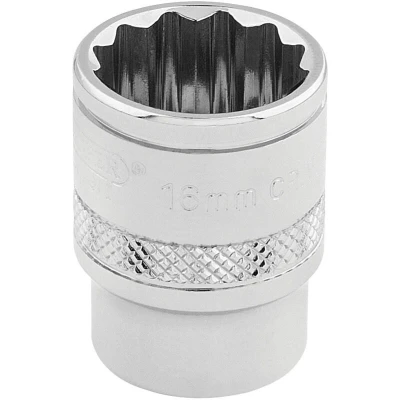 General description This 3/8-inch drive metric socket is made from high-quality chrome vanadium steel, ensuring durability and strength. It features a polished chrome finish for corrosion resistance and a professional appearance. The socket has 12 points for a secure grip on fasteners and is designed for precise fit and easy use. Each socket includes a knurled ring for enhanced grip during handling and operation. Technical specifications Drive size: 3/8 inch Socket type: 12-point Material: Chrome vanadium steel Finish: Polished chrome Size: 16mm Manufactured in accordance with DIN3122 and ISO3315 standards Compatibility and accessories Compatible with 3/8-inch drive ratchets and extensions Suitable for use with various hand tools designed for metric fasteners Installation Attach the socket securely onto a compatible 3/8-inch drive ratchet or wrench Ensure the socket is properly seated before applying torque to prevent slipping or damage Usage Use to tighten or loosen metric fasteners