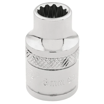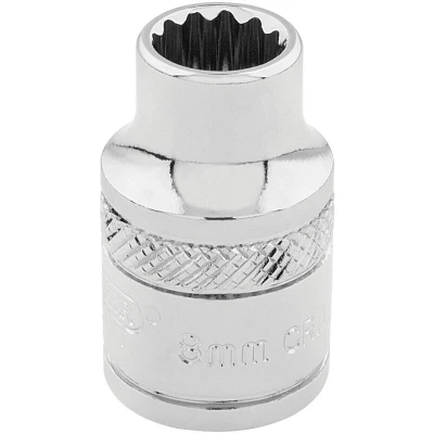General description Expert Quality, 12 point sockets manufactured from chrome vanadium steel that is hardened and tempered with a polished finish. This 3/8-inch square drive socket is designed for professional and DIY use, offering high durability and precision. The socket features a knurled ring for a secure grip during use and is suitable for various mechanical tasks, providing reliable engagement with fasteners. Technical specifications Size: 8mm Drive Size: 3/8 inch Type: 12-point socket Material: Chrome vanadium steel Finish: Polished chrome Standards: Manufactured in accordance with DIN 3122 and ISO 3315 Compatibility and accessories Compatible with 3/8-inch drive ratchets and extensions Suitable for use with various hand tools designed for 12-point sockets Installation Attach the socket to a compatible 3/8-inch drive ratchet or wrench Ensure the socket is securely fitted before use Usage Use for tightening or loosening fasteners with 8mm size Apply appropriate torque to avoid