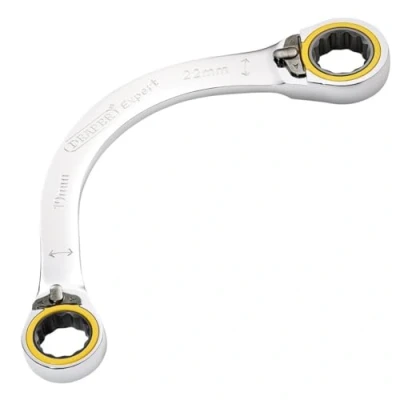 AmazonManufactured from hardened and tempered chrome vanadium steel, with a mirror chrome plate finish for corrosion protection The 100-tooth ratchet enables 3.6° movement and the curved shape makes it easier to reach round obstacles, making the spanner ideal for use where there’s limited space The ring end is 12-point HI-TORQ, providing a superior grip Draper lifetime warranty, Weight: 0.84216584084 pounds, Manufacturer: Draper