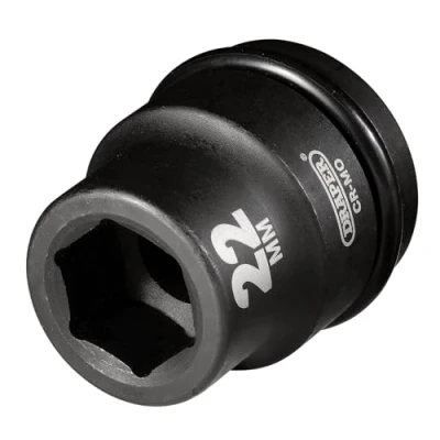 General description High-quality 6-point impact sockets forged from chrome molybdenum steel for durability and strength. They are hardened, tempered, and chemically blacked for corrosion resistance. Suitable for use with air, electric, or manual impact wrenches. Each socket is supplied with a pin and ring for secure attachment. Technical specifications Material: Chrome molybdenum steel Type: 6-point impact sockets Finish: Blacked for corrosion protection Included: Pin and ring Compatibility and accessories Compatible with impact wrenches using a 3/4" square drive Supplied with a ring and pin for secure fitting Installation Always use the ring and pin to secure the socket to the impact wrench's output shaft. Usage Designed for heavy-duty impact applications. Suitable for professional and DIY use in automotive, construction, and maintenance tasks.