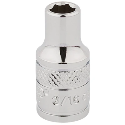 General description Expert Quality, 6 point socket manufactured from chrome vanadium steel that's hardened and tempered with a polished finish. Each socket has a knurled ring for extra grip, designed for professional use and offers high performance for various fastening tasks. Technical specifications Size: 3/16 inch (6mm) Drive: 1/4 inch square Type: 12-point socket Material: Chrome vanadium steel, hardened and tempered Finish: Polished Design: Knurled ring for extra grip Compatibility and accessories Compatible with 1/4 inch drive ratchets and extensions Suitable for use with various hand tools designed for 12-point sockets Installation Insert the socket onto a compatible 1/4 inch drive ratchet or extension Ensure it is securely attached before use Usage Use for tightening or loosening fasteners with a 12-point socket Ideal for automotive, machinery, and household repairs Other information Expert quality socket manufactured from durable chrome vanadium steel Polished finish for