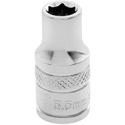 General description High-quality 6-point sockets made from chrome vanadium steel for durability and strength. These sockets are hardened and tempered with a polished finish for a professional look and long-lasting performance. They are suitable for various DIY and home improvement tasks requiring reliable tools. Technical specifications Material: Chrome vanadium steel Finish: Polished Type: 6-point sockets Manufacturing process: Hardened and tempered Size: 5.5mm Compatibility and accessories Compatible with standard ratchets and socket wrenches Includes a knurled ring for extra grip during use Installation Insert the socket onto a compatible ratchet or wrench Ensure it is securely fitted before use Usage Ideal for tightening or loosening nuts and bolts Suitable for professional and DIY applications requiring high torque and precision