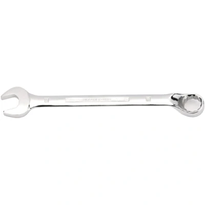 General description This is a high-quality, professional-grade wrench designed for durability and precision. It features a deep offset ring end and an open end, both set at 15°, making it suitable for accessing tight or hard-to-reach areas. Crafted from chrome vanadium steel, it offers excellent strength and resistance to wear. Technical specifications Material: Chrome vanadium steel Finish: Hardened, tempered, chrome plated, and fully polished Offset ring end angle: 15° Open end angle: 15° Pattern: Long pattern forged Compatibility and accessories Designed to fit standard fasteners and nuts Compatible with a range of tools that require a 15° offset Installation No installation required; ready to use out of the box. Usage Ideal for professional and DIY tasks involving nuts and bolts Suitable for use in confined spaces due to its offset design