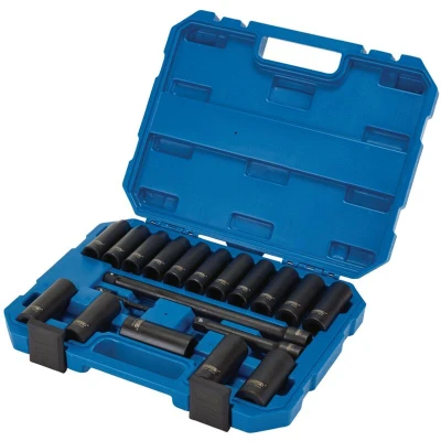 • Draper HI-TORQ® 6-point deep impact sockets in variety of sizes from 8-24mm • Forged from chrome vanadium steel correctly hardened and tempered • Black phosphate finish for corrosion protection • Includes 125mm and 250mm 1/2" Sq. Dr. impact extensions and 70mm 1/4" hex to 1/2" Sq. Dr. adaptor • Supplied in a sturdy plastic caseThe components of this Draper HI-TORQ® 6-point deep impact socket set are forged from hardened and tempered chrome vanadium steel. They have a black phosphate finish for corrosion protection. The sockets are in variety of sizes from 8-24mm and the set includes a 125mm and 250mm 1/2" Sq. Dr. impact extension and 70mm 1/4" hex to 1/2" Sq. Dr. adaptor. Supplied in a sturdy blow moulded case. 16 x Draper HI-TORQ® 6-point deep impact sockets, 1/2" Sq. Dr.: 8, 10, 11, 12, 13, 14, 15, 16, 17, 18, 19, 20, 21, 22, 23, 24mm1 x Impact extension, 125mm, 1/2 Sq. Dr. 1 x Impact extension, 250mm, 1/2" Sq. Dr. 1 x 1/4" hex to 1/2" socket drive adaptor, 70mm Technical Specification:Pack Quantity: 19 Case Included: Yes Product Type: SocketsDimensions: Length: 372mm x Height: 70mmWeight: 4.78KgWarranty: Lifetime