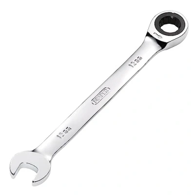 General description This Draper HI-TORQ® 12mm Metric Ratcheting Combination Spanner is designed for both professional and DIY use. It features an open-end set at a 15° angle for better access in tight spaces and a ratcheting ring end with a 72-tooth mechanism for smooth and efficient operation. Made from forged chrome vanadium steel, this tool is hardened, tempered, and chrome plated for enhanced durability and corrosion resistance. Technical specifications Open end angle: 15° Ratcheting mechanism: 72 teeth Material: Chrome vanadium steel Finish: Chrome plated Compatibility and accessories Suitable for use with standard metric fasteners Part of a set that includes various sizes for comprehensive coverage Installation No installation required; ready to use out of the box Usage Ideal for tightening or loosening nuts and bolts in confined spaces Suitable for professional workshops and home improvement projects