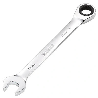 General description This is a Draper 17mm Metric Ratcheting Combination Spanner, designed for both tightening and loosening nuts and bolts. It features a blue finish and is made from durable chrome vanadium steel. Technical specifications Length: 8230 mm Size: 17 mm Open end angle: 15° Ratcheting mechanism: 72 teeth Material: Chrome vanadium steel Finish: Chrome plated Compatibility and accessories Suitable for use with standard 17 mm fasteners Installation No installation required; ready to use out of the box Usage Designed for tightening and loosening nuts and bolts Ratcheting mechanism allows for efficient operation in tight spaces Other information Display packed for easy storage and display