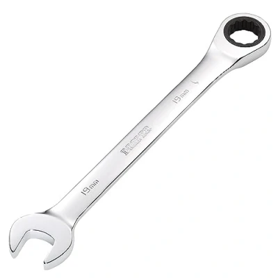 General description This Draper 19.0mm HI-TORQ® Metric Ratcheting Combination Spanner is designed for professional use, featuring both open-end and ratcheting combination spanners. The open end is set at a 15° angle for easier access in tight spaces, while the ratcheting ring end boasts a 72-tooth mechanism for smooth and efficient operation. Made from forged chrome vanadium steel, these tools are hardened, tempered, and chrome plated for durability and corrosion resistance, making them suitable for various DIY and home improvement tasks, especially for scaffolders and professionals. Technical specifications Size: 19.0 mm Open end angle: 15° Ratcheting mechanism: 72 teeth Material: Chrome vanadium steel Finish: Chrome plated Compatibility and accessories Compatible with standard 19 mm fasteners Part of a set of spanners for comprehensive tool coverage Installation No installation required; ready to use out of the box Usage Use the open end for quick loosening or tightening of nuts and