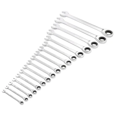 General description This 17-piece set of HI-TORQ® metric ratchet combination spanners is designed for professional and DIY use. Made from durable chrome vanadium steel, these spanners are hardened, tempered, fully polished, and corrosion-resistant. The open ends are offset at 15° for better access in tight spaces, while the ring ends feature a 90-tooth ratchet mechanism that allows for a 4° swing, making them suitable for confined areas. The 12-point HI-TORQ® design provides maximum torque transfer to prevent slipping and damage to fasteners. The set includes commonly used sizes and is stored in a convenient Tetron wallet for easy organization and transport. Technical specifications Material: Chrome vanadium steel Finish: Mirror chrome plating Open end offset: 15° Ratchet mechanism: 90 teeth, 4° movement Design: 12-point HI-TORQ® for maximum torque Number of pieces: 17 Compatibility and accessories Compatible with standard metric fasteners Includes a Tetron wallet for storage and