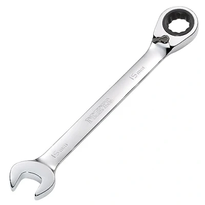 AmazonSize: 15mm Material: Chrome Vanadium Steel Open End Head Angled: 15° Ring Head Angled: 15° Tempered and Chrome Plated for Long Life, Manufacturer: Draper