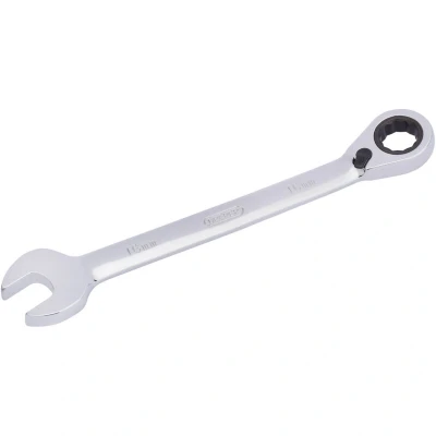 These Draper HI-TORQ® metric reversible ratchet combination spanners are forged from chrome vanadium steel that is hardened, tempered, fully polished and mirror chrome plated for corrosion protection. The open end is offset at 15°. The ring end has a 15° cranked head which incorporates a 90-tooth ratchet mechanism allowing 4° movement, enabling use in tight spaces. There is also a forward and reverse direction lever on the ring end. The 12-point HI-TORQ® delivers maximum leverage by transferring torque to the flats and preventing slipping or damage to the fastener.