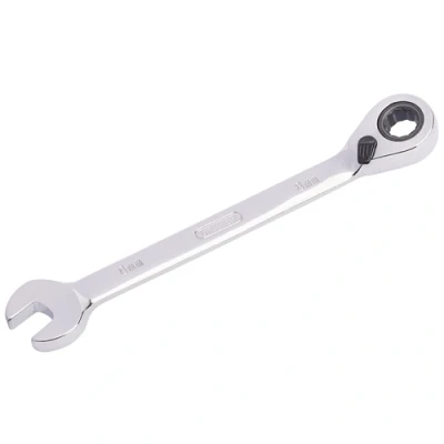 These Draper HI-TORQ® metric reversible ratchet combination spanners are forged from chrome vanadium steel that is hardened, tempered, fully polished and mirror chrome plated for corrosion protection. The open end is offset at 15°. The ring end has a 15° cranked head which incorporates a 90-tooth ratchet mechanism allowing 4° movement, enabling use in tight spaces. There is also a forward and reverse direction lever on the ring end. The 12-point HI-TORQ® delivers maximum leverage by transferring torque to the flats and preventing slipping or damage to the fastener.