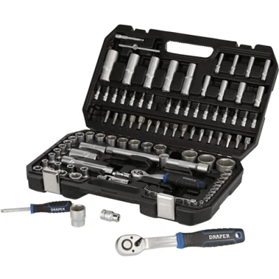 The Draper socket set is a high-quality metric socket set made from chrome vanadium steel (CR-V) which is correctly hardened and tempered for strength and durability. All parts are manufactured according to the valid DIN and ISO standards. The components with satin chrome plating for corrosion protection. The 72-tooth ratchet is equipped with an easy-to-use reverse lever to change the direction. It has a quick-release button to allow the rapid locking and quick release of sockets. With comfort in mind, the ratchet handles have been designed and fitted with ergonomic soft-grip handles for continuous comfort while using. The quick-release button allows for rapid locking and quick release of sockets. The Draper HI-TORQ® sockets deliver optimum leverage with minimal risk of damage. This delivers maximum leverage by transferring torque to the flats. It also simultaneously prevents slipping or damage to the fastener. The range of screwdriver bits has been made from high-quality CR-V steel and are supplied in their own plastic storage case to keep them in one place. The set includes 17 x 1/2" Sq. Dr. Six-point Draper HI-TORQ® sockets: 10, 11, 12, 13, 14, 15, 16, 17, 18, 19, 20, 21, 22, 24, 27, 30, 32mm, 5 x 1/2" Sq. Dr. six-point Draper HI-TORQ® Deep sockets: 14, 15, 17, 19, 22mm, 2 x 1/2" Sq. Dr. Extension bars: 125, 150mm, 1 x 1/2" Sq. Dr Universal joint, 8 x 1/2" Sq. Dr. Draper sockets: E10, E11, E12, E14, E16, E18, E20, E24 and 1 x 1/2" Sq. Dr Quick-release 72-tooth ratchet handle. To protect the tools while being transported or in storage they come supplied in a sturdy, plastic case. This comes with the Draper lifetime warranty.