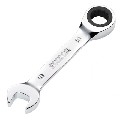 ManoManoThese Draper HI-TORQ metric stubby ratchet combination spanners are forged from chrome vanadium steel that is hardened, tempered, fully polished and mirror chrome plated for corrosion protection. The open end is offset at 15 . The ring end has a 90-tooth ratchet mechanism allowing 4 movement, enabling use in tight spaces. The 12-point HI-TORQ delivers maximum leverage by transferring torque to the flats and preventing slipping or damage to the fastener.