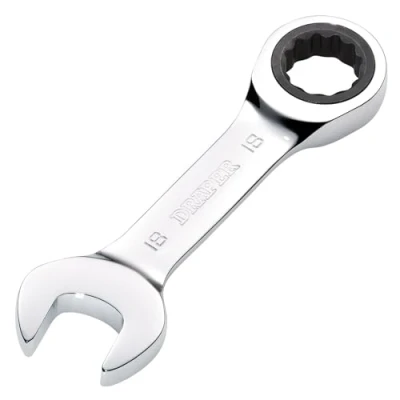 ManoManoThese Draper HI-TORQ metric stubby ratchet combination spanners are forged from chrome vanadium steel that is hardened, tempered, fully polished and mirror chrome plated for corrosion protection. The open end is offset at 15 . The ring end has a 90-tooth ratchet mechanism allowing 4 movement, enabling use in tight spaces. The 12-point HI-TORQ delivers maximum leverage by transferring torque to the flats and preventing slipping or damage to the fastener.
