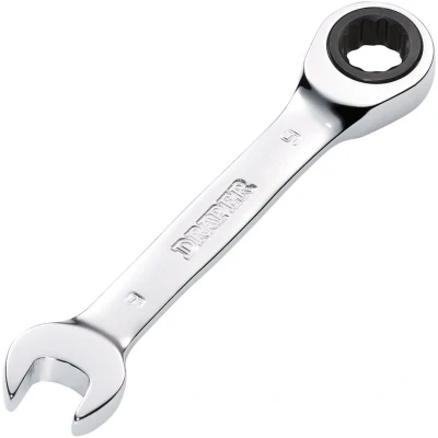 ManoManoThese Draper HI-TORQ metric stubby ratchet combination spanners are forged from chrome vanadium steel that is hardened, tempered, fully polished and mirror chrome plated for corrosion protection. The open end is offset at 15 . The ring end has a 90-tooth ratchet mechanism allowing 4 movement, enabling use in tight spaces. The 12-point HI-TORQ delivers maximum leverage by transferring torque to the flats and preventing slipping or damage to the fastener.