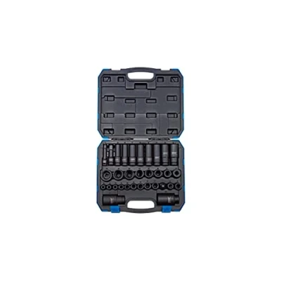 General description High-quality impact sockets forged from chrome molybdenum steel for durability and strength. Hardened, tempered, and chemically blacked for corrosion resistance. This set includes a variety of sizes for different applications, such as 9 to 17mm and 13 to 30mm in both standard and deep sockets. It features a hole for an accessory spring-loaded ball to secure sockets during use and is supplied in a sturdy plastic storage case for organization and portability. Technical specifications Material: Chrome molybdenum steel Finish: Blackened for corrosion protection Socket sizes: 9, 10, 11, 12, 14, 15, 16, 17mm, and 13, 15, 17, 18, 19, 21, 22, 24, 27, 30mm Extension bars: 75mm length for both 1/2 and 3/8 drives Adaptor: 1/2 (F) x 3/8 (M) Compatibility and accessories Designed for use with impact wrenches and power tools that accept impact sockets. Only impact sockets and accessories should be used with air or electric impact wrenches to prevent shattering and injury.