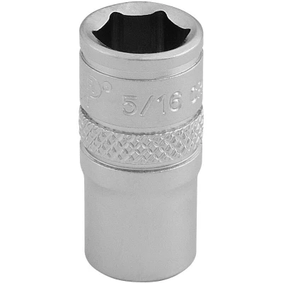 General description Expert Quality, 6 point sockets manufactured from chrome vanadium steel hardened and tempered with a polished finish. Each socket has a knurled ring for extra grip, making it suitable for professional use and high durability. Technical specifications Drive size: 1/4 inch Socket size: 5/16 inch Number of points: 6-point Material: Chrome vanadium steel Finish: Polished Manufactured according to DIN3122 and ISO3315 standards Compatibility and accessories Compatible with 1/4" drive ratchets and extensions Suitable for use with other 1/4" drive tools Installation Insert the socket onto a compatible 1/4" drive ratchet or wrench Ensure it clicks securely into place before use Usage Use for tightening or loosening fasteners with 5/16" size Apply appropriate torque to avoid damage