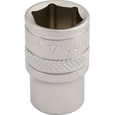 General description This is a high-quality 1/4" square drive imperial socket designed for professional and DIY use. It is suitable for tightening or loosening fasteners with a 7/16" size. Technical specifications Material: Chrome vanadium steel Finish: Polished Drive size: 1/4 inch Socket size: 7/16 inch Number of points: 6 Compatibility and accessories Compatible with 1/4" drive ratchets and extensions Installation Insert the socket onto a compatible 1/4" drive ratchet or tool Usage Use to tighten or loosen fasteners with a 7/16" head Designed for professional and home improvement tasks Other information Expert Quality, 6 point sockets manufactured from chrome vanadium steel hardened and tempered with a polished finish Each socket has a knurled ring for extra grip Display packed This is a Draper product.
