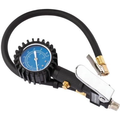 Electrical WorldIn-line tyre inflator fitted with a clip-on connector compatible for most vehicles including; cars, commercial vehicles, motorbikes and trailers and the easy to read 55mm gauge is attached with a heavy-duty rubber cover for increased protection. Maximum inflation pressure 12 BAR (170psi). Supplied with a 1/4" BSP male adaptor.