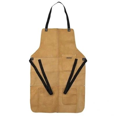 Split suede leather Has neck loop, front pocket and waist ties 700mm in length each side Part Number:09699, Manufacturer: Draper