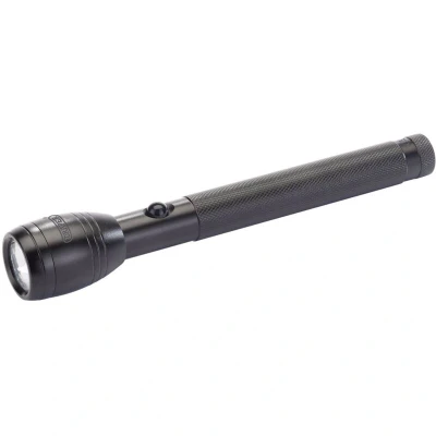 Electrical WorldAluminium case with on/off button. The LEDs produces clear beam of 20 lumen light. Fitted with a focusing beam function. Uses 2 x AA size batteries (sold separately). Display packed.