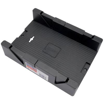 General description This is a durable, impact-resistant plastic box designed for cutting and measuring tasks. It features guides for precise angled cuts at 45°, 60°, and 90° on both edges, making it suitable for cutting various sizes of coving, skirting boards, and similar materials. Technical specifications Material: Recycled impact-resistant plastic Dimensions: 325 x 180 x 60 mm Color: Black Guide angles: 45°, 60°, and 90° on both edges Base features: Two countersunk slots for fixing to a workbench Package Quantity: 1 Compatibility and accessories Compatible with various saws and cutting tools used in DIY and home improvement projects Includes guides for precise angled cuts Installation Fix the box securely to a workbench using the two countersunk slots on the base Usage Use the guides to make accurate cuts at 45°, 60°, or 90° angles Ideal for cutting coving, skirting boards, and similar materials