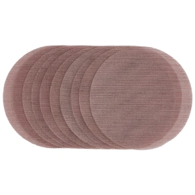 General description High-performance 125mm mesh sanding discs designed for durability and efficiency. These discs last up to 10 times longer than conventional sanding discs, providing long-lasting performance for various sanding tasks. The mesh base is made from aluminium oxide resin-bonded for enhanced durability, allowing debris to move through the mesh to prevent clogging and enable efficient dust extraction. The hook and loop backing allows quick and easy disc changes without the need to align dust extraction holes. Technical specifications Diameter: 125mm Grit: 240 Material: Aluminium oxide mesh Bonding: Resin bonded Pack size: 10 discs Compatibility and accessories Compatible with all 125mm random orbital sanders with a hook and loop backing pad Suitable for use with sanding and finishing accessories compatible with hook and loop attachment systems Installation Attach the disc to a compatible random orbital sander with a hook and loop backing pad Ensure the disc is securely