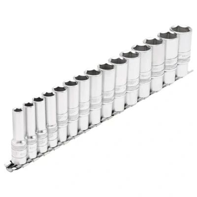 Draper Metric Deep Socket Set on a Metal Rail, 3/8" Sq. Dr. (15 Piece)