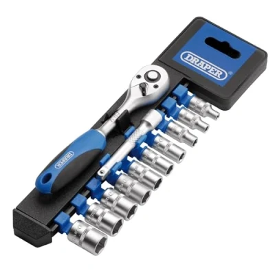 Electrical WorldManufactured from chrome vanadium steel hardened and tempered with a satin finish. Supplied with 72 tooth reversible soft grip ratchet and 75mm extension bar. Supplied on a socket rack for easy storage and transportation. Display packed.
