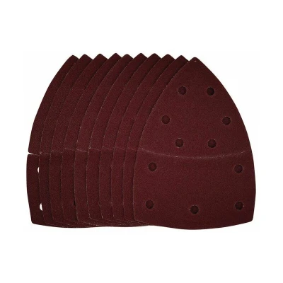 Electrical WorldThese multi-sanding sheets have a perforated tear off delta sheet for detail sanding (102 x 62mm, 93mm). They are made from aluminium oxide that is resin bonded to provide improved grain adhesion, anti-static qualities and long-lasting performance. The heavy-duty E-Weight backing paper makes the sanding sheet more durable – able to withstand the toughest jobs. The hook and loop backing offers decent adhesion to facilitate the fast changing of sanding sheets. The 11 pre-punched 8mm holes help eliminate clogging and improve the dust extraction. Ideal for sanding and finishing wood, metal, aluminium alloy, painted surfaces, plastic and fillers. Compatible with most mouse detail sanders with hook and loop backing pads including Draper Stock No. 57681.
