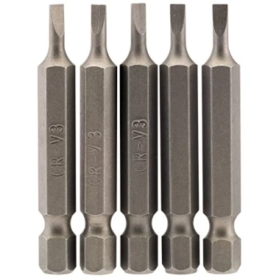 General description This product is a set of high-quality hex shank insert bits made from hardened and tempered chrome vanadium steel. Designed for durability and precision, these bits are suitable for various DIY and home improvement tasks. Technical specifications Material: Chrome vanadium steel Finish: Shot blasted for enhanced durability Type: Insert bits with plain slot E shank Size: 50mm length, 3.0mm plain slot Quantity: Available in sets of 1, 2, 5, or 10 pieces Compatibility and accessories Compatible with power drills and screwdrivers that accept hex shank bits Designed for use with insert bits with plain slot E shank Installation Insert the bit into the chuck of your drill or screwdriver until securely fitted Usage Ideal for driving screws with plain slot heads Suitable for DIY projects, home repairs, and assembly tasks