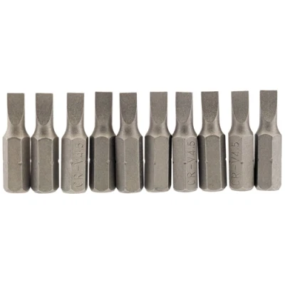 General description This is a Draper 25PS/10/B 4.5mm 1/4 inch hex plain slot insert bit, measuring 25mm in length. It is designed for use with screwdrivers and power tools for driving plain slot screws. Technical specifications Material: Chrome vanadium steel, hardened and tempered Finish: Shot blasted for durability Size: 25mm length, 4.5mm width Drive: 1/4 inch hex Type: Plain slot insert bit Quantity options: Supplied in packs of 1, 2, 5, or 10 Compatibility and accessories Compatible with standard 1/4 inch hex screwdriver and power drill chucks Installation Insert the bit into the chuck of your screwdriver or drill until securely fitted Usage Use for driving plain slot screws in various DIY and home improvement projects Suitable for light to medium duty tasks