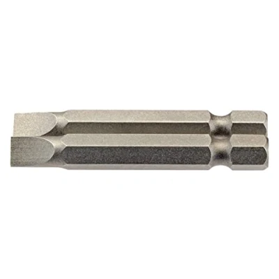 General description This set includes two 50mm long hex plain slot insert bits with a 1/4 inch shank, designed for use with compatible screwdrivers and power tools. Made from hardened and tempered chrome vanadium steel, these bits are durable and resistant to wear. They feature a shot-blasted finish for improved grip and longevity. Technical specifications Material: Chrome vanadium steel Length: 50mm Shank size: 1/4 inch (6.35mm) hex Type: Plain slot insert bits Finish: Shot blasted Quantity: 2 pieces per pack Compatibility and accessories Compatible with power screwdrivers and drill drivers that accept 1/4 inch hex shank bits Suitable for driving screws with straight or flat slots Installation Insert the bit into the chuck of your power tool or screwdriver until it is securely seated Usage Use for driving flat-head screws in DIY, home improvement, and professional projects Ensure the bit is properly aligned with the screw to prevent slipping or damage