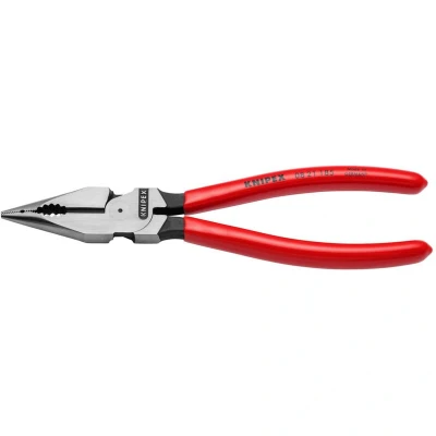 General description These combination pliers feature pointed jaws designed for precise work in confined spaces. They are suitable for installation, repair, and general maintenance tasks. The slim head and pointed tips allow for easy handling in tight areas. The pliers have a milled gripping area for holding small parts such as nails, pins, and bolts. They are equipped with high-leverage joints for effortless cutting of soft, medium-hard, and hard wires. These versatile pliers are ideal for both professional and DIY use. Technical specifications Type: Needle-nose combination pliers Jaw length: Designed for precise gripping in tight spaces Cutting capacity: Soft wire, medium-hard wire (diameter): 3.8mm; Hard wire (diameter): 3.0mm Cutting capacity: Copper cable, multiple-stranded: 13.0mm diameter or 25.0mm length Hardness of cutting edges: approx. 64 HRC Material: High-quality steel with induction-hardened cutting edges Compatibility and accessories Compatible with various small