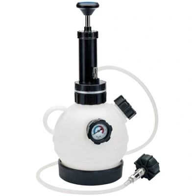 Expert Quality, pump action manual brake bleeder ideal for one person operation on vehicles unable to be bled using suction methods. Fitted with pressure gauge, release valve, spring loaded hose coupling and supplied with 1m (approx.) of flexible hose. 2L clean brake fluid capacity, ideal for busy workshop environments. Carton packed.