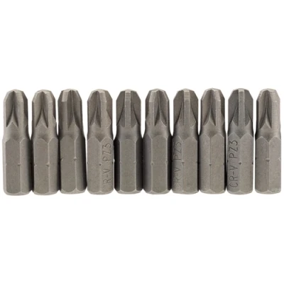 General description This Draper 10-Piece 25mm PZ Screwdriver Bits Set includes Phillips PZ Type E insert bits designed for use with screwdrivers and power tools. The set features a long 25mm shaft for extended reach and precision, making it suitable for various DIY and home improvement tasks involving Phillips screws. Technical specifications Material: Chrome vanadium steel Finish: Shot blasted for durability Size: 25mm length Type: PZ (Pozidriv) insert bit Shape: Hexagon shank, 1/4" drive Compatibility and accessories Compatible with standard 1/4" drive screwdrivers and power tools Suitable for use with Pozidriv screws Installation Insert the bit into the chuck of your screwdriver or drill Ensure it is securely fitted before use Usage Use for driving or removing Phillips screws with Pozidriv heads Ideal for DIY projects, furniture assembly, and home repairs Other information Supplied in display packaging for easy storage and selection Pack options: 1, 2, 5, or 10 pieces