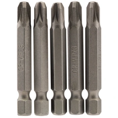 General description This is a Draper No.3 1/4" Hex PZ Type Insert Bit, designed for use with screwdrivers and drill drivers. It measures 50mm in length and is suitable for various DIY and home improvement tasks. Technical specifications Material: Chrome vanadium steel, hardened and tempered for durability Finish: Shot blasted for a smooth surface Size: 50mm long, 1/4" hex shank Type: PZ (Pozidriv) insert bit Pack options: Supplied in packs of 1, 2, 5, or 10 bits Compatibility and accessories Compatible with standard drill drivers and screwdrivers that accept 1/4" hex bits Suitable for use with various screw types requiring Pozidriv drive Installation Insert the bit into the chuck of your drill or screwdriver until it clicks into place Ensure the bit is securely fitted before use Usage Use for driving screws with Pozidriv drive in DIY, woodworking, and home improvement projects Apply appropriate torque to avoid damaging the bit or screw