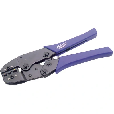General description This professional-grade Draper RCT Expert 220mm Ratchet Action Terminal Crimping Tool is designed for crimping insulated terminals with precision and safety. Made from carbon steel with hardened and tempered jaws, it ensures durable and reliable performance. The tool features a chemically blacked finish and PVC grips for comfort and safety, allowing continuous crimping at a preset tension for accurate and consistent results, reducing rework. It is suitable for both professional electricians and DIY enthusiasts, making it ideal for various wiring projects. Technical specifications Material: Carbon steel with blackened finish Handle: PVC grips for comfort and safety Dimensions: approximately 29.7 x 11.7 x 2.6 cm (L x W x H) Color: Blue and black Suitable crimping ranges for insulated terminals: Red channel: 0.5-1.00 mm² Blue channel: 1.5-2.5 mm² Yellow channel: 4.0-6.0 mm² Compatibility and accessories Compatible with insulated terminals in the following ranges: Red: