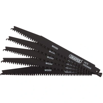 Draper Reciprocating Saw Blades for Wood and Plastic Cutting, 200mm, 6 10tpi (Pack of 5)