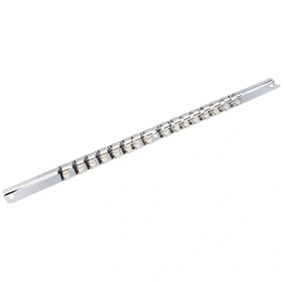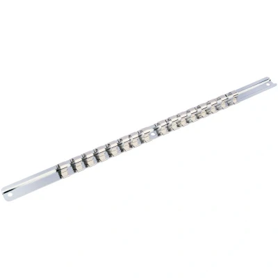 General description This product consists of socket retaining bars that can be wall-mounted or used as loose tools. Manufactured from hardened and tempered carbon steel with a polished finish, it ensures durability and corrosion resistance. The clips are crafted from nickel-plated spring steel for secure attachment and easy handling. Technical specifications Material: Carbon steel Clips: Nickel-plated spring steel Finish: Polished Length: 415 mm Compatibility and accessories Designed to hold various sockets securely Compatible with standard socket sizes Installation Can be mounted on a wall using appropriate hardware Suitable for workshop or garage organization Usage Use to organize and store sockets securely Easy to remove and replace sockets as needed