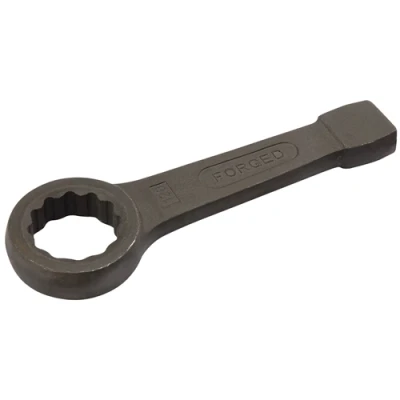 General description Flat pattern spanners with a striking end, designed for heavy-duty applications. Forged from high-quality carbon steel, these tools are hardened and tempered for durability and feature a black phosphate finish for corrosion resistance. Technical specifications Size: 41mm Length: approximately 5mm variation Compatibility and accessories Designed to fit 41mm fasteners and bolts. Sold individually (loose). Installation No installation required; ready to use out of the box. Usage Ideal for loosening or tightening large nuts and bolts. Suitable for professional and DIY tasks requiring high torque.