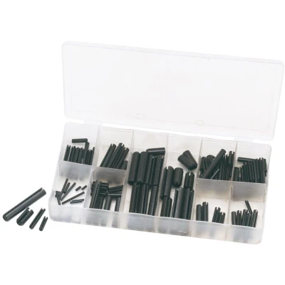 Electrical WorldPopular imperial sized roll pins in plastic storage case. Display carton.