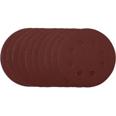 Electrical WorldThese premium quality aluminium oxide 115mm sanding discs are resin bonded to provide improved grain adhesion, anti-static qualities and long-lasting high performance. The heavy-duty E-Weight backing paper makes the sanding disc more durable – able to withstand the toughest jobs. The hook and loop backing offers decent adhesion to facilitate the fast changing of sanding discs. The eight pre-punched 8mm holes improve the dust extraction during sanding. Ideal for sanding and finishing wood, metal, aluminium alloy, painted surfaces, plastic and fillers. Compatible with all 115mm hook and loop backing pads.