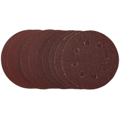 Electrical WorldThese premium quality aluminium oxide 115mm sanding discs are resin bonded to provide improved grain adhesion, anti-static qualities and long-lasting high performance. The heavy-duty E-Weight backing paper makes the sanding disc more durable – able to withstand the toughest jobs. The hook and loop backing offers decent adhesion to facilitate the fast changing of sanding discs. The eight pre-punched 8mm holes improve the dust extraction during sanding. Ideal for sanding and finishing wood, metal, aluminium alloy, painted surfaces, plastic and fillers. Compatible with all 115mm hook and loop backing pads.