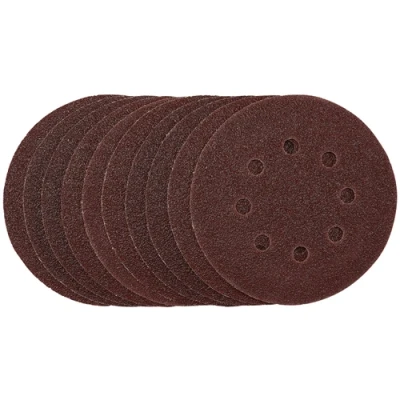 General description This set includes 10 high-quality 125mm sanding discs with hook and loop backing. Made from resin-bonded aluminum oxide, these discs offer excellent grain adhesion, anti-static properties, and long-lasting performance. The heavy-duty E-Weight backing ensures durability for demanding tasks. Designed for versatility, they are suitable for sanding and finishing wood, metal, aluminum alloys, painted surfaces, plastics, and fillers. The discs feature eight pre-punched 8mm holes to improve dust extraction during sanding. Technical specifications Diameter: 125mm Grit: 40 Backing: Hook & Loop Material: Aluminum oxide resin-bonded Backing weight: E-Weight (heavy-duty) Number of discs: 10 Pre-punched holes: 8mm diameter, 8 holes Compatibility and accessories Compatible with all 125mm random orbital sanders with hook and loop backing pads Installation Attach the disc to the sander's hook and loop backing pad, ensuring it is securely in place before use Usage Use for sanding