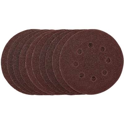 Electrical WorldThese premium quality aluminium oxide 125mm sanding discs are resin bonded to provide improved grain adhesion, anti-static qualities and long-lasting high performance. The heavy-duty E-Weight backing paper makes the sanding disc more durable – able to withstand the toughest jobs. The hook and loop backing offers decent adhesion to facilitate the fast changing of sanding discs. The eight pre-punched 8mm holes improve the dust extraction during sanding. Ideal for sanding and finishing wood, metal, aluminium alloy, painted surfaces, plastic and fillers. Compatible with all 125mm random orbital sanders with hook and loop backing pads.