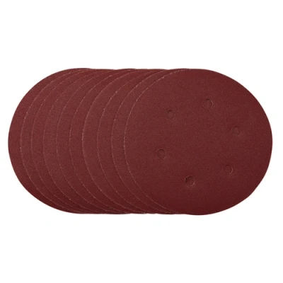 Electrical WorldThese premium quality aluminium oxide 150mm sanding discs are resin bonded to provide improved grain adhesion, anti-static qualities and long-lasting high performance. The heavy-duty E-Weight backing paper makes the sanding disc more durable – able to withstand the toughest jobs. The hook and loop backing offers decent adhesion to facilitate the fast changing of sanding discs. The six pre-punched 8mm holes improve the dust extraction during sanding. Ideal for sanding and finishing wood, metal, aluminium alloy, painted surfaces, plastic and fillers. Compatible with all 150mm random orbital sanders with hook and loop backing pads.