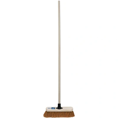 General description This is a soft coco broom with a 300mm width, designed for gentle cleaning and sweeping tasks. Technical specifications Width: 300mm Material: Coco fibers Handle: Wooden Compatibility and accessories Compatible with standard broom supports Includes support bracket for mounting Installation Attach the wooden handle to the broom head if not pre-assembled Mount the support bracket on a suitable wall or storage area for easy access Usage Ideal for sweeping floors, patios, and other surfaces requiring gentle cleaning Use with a comfortable grip for effective sweeping